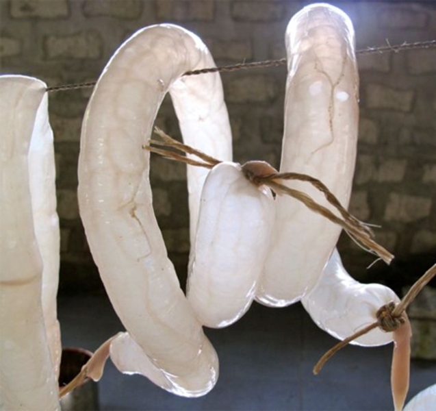 Один из самых первых презервативов – кишечник свиньи. Существовали даже инструкции по применению, согласно которым любовный девайс нужно было размочить в теплом молоке непосредственно перед половым актом. Такой презерватив был придуман в 1642 году жителями замка Дадли в Англии.