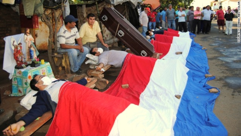В одном из городков Парагвая в 2013 году несколько водителей автобусов попали в списки сокращения сотрудников штата. Трудяги были очень недовольны таким решением местных властей, поэтому 15 августа они решили запротестовать. Закончилось все тем, что шоферы прибили себя гвоздями к доскам. Как утверждает CNN, бедняги провели в таком состоянии 17 дней. Конфликт до сих пор остается не разрешенным.