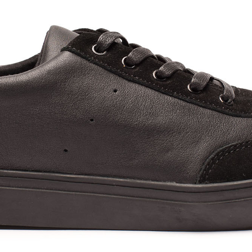 Мужчинам, ведущим активный образ жизни, работающим в офисе без строго дресс-кода, и не представляющим себя в туфлях, рекомендуем носить кожаные кроссовки. Например: