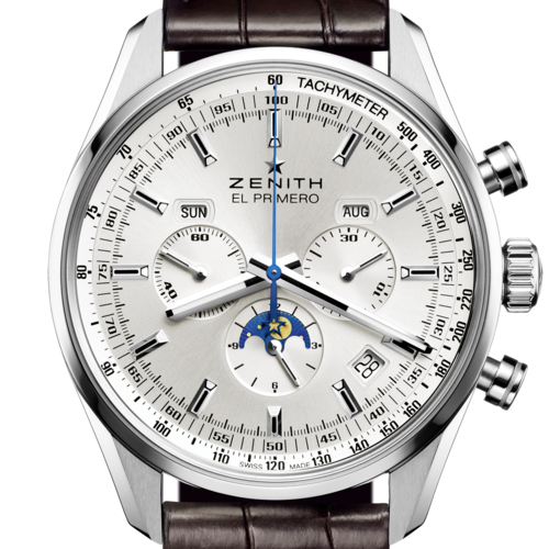 Данная модель от ТМ Zenith может похвастаться тахометром - позволяет измерять скорость. И это помимо того, что механизм El Primero имеет частоту 36 тысяч колебаний в час. И на мужской руке такой аксессуар смотрится довольно таки солидно.