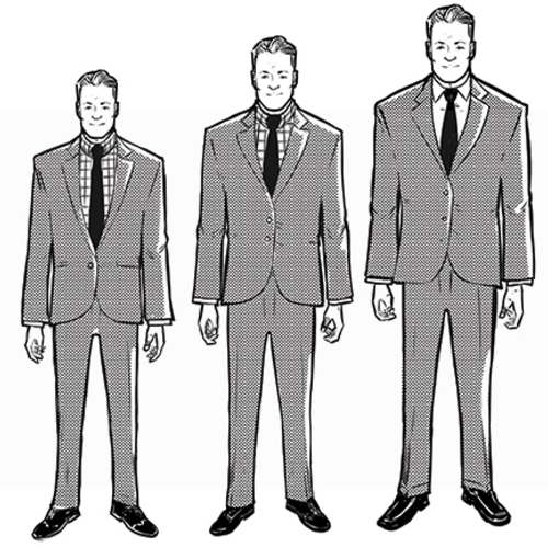Средний рост - 2 пуговицы пиджака, и все по стандарту. Хотя, возможность оптически регулировать длину тела за счет пуговиц никто не запрещал.