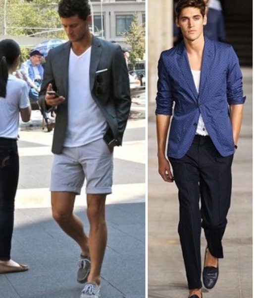 Пиджаки в прохладное летнее время предпочитают носить и звезды. Среди них Брэд Питт, Дэвид Бэкхэм, Джастин Тимберлейк, Джордж Клуни, Роберт Дауни младший и другие. Эти джентельмены, как правило, выбирают классический пиджак, но умело разбавляют образ правильными деталями и аксессуарами.