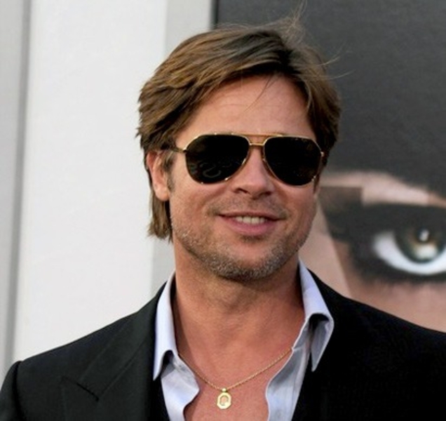 Интересный персонаж. Частая смена стрижки заставляет дам следить за трансформациями Питта, а солнцезащитные очки-авиаторы привлекают внимание и вызывают желание взглянуть собеседнику в глаза. Кроме того, у Питта безупречный стиль в целом – берем пример.