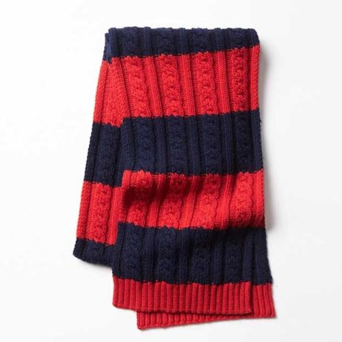 Шарф никогда не бывает лишним. Особенно если за окном -15°C. Красная и черная полоски — чтобы аксессуар притягивал внимание, но не слишком выбивался из твоей сдержанной палитры.