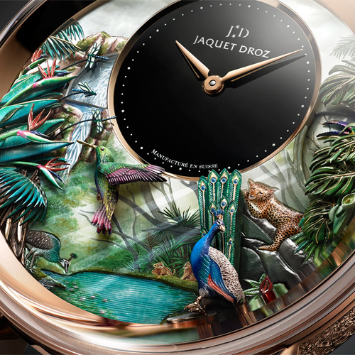 Швейцарский бренд часов Jaquet Droz представил часы, от которых любители дикой природы будут в восторге. Имя аксессуара — Tropical Bird Repeater.