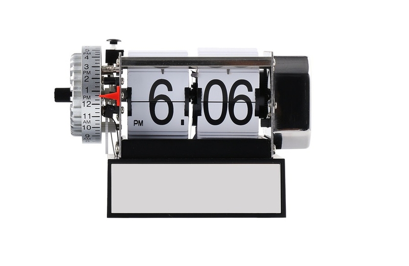 Винтажный будильник с классическим набором карточек вместо электронного циферблата и знакомым “щелкающим“ звуком. Стильно.