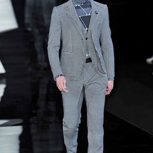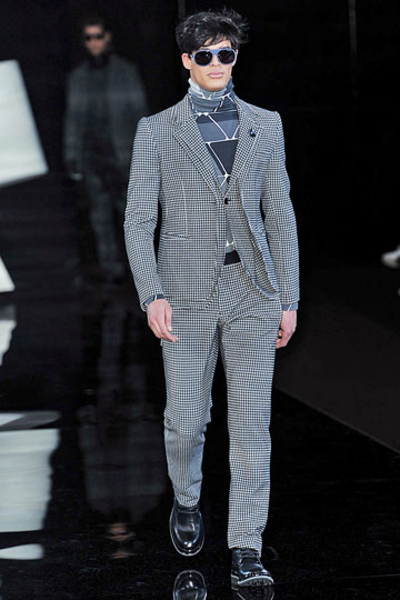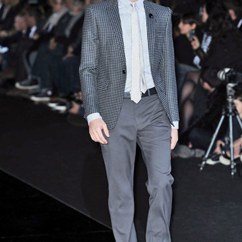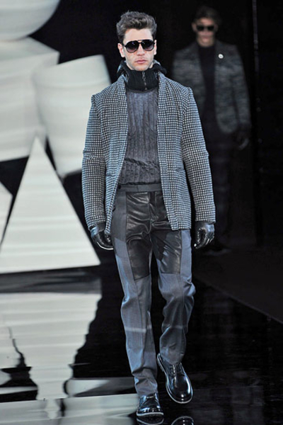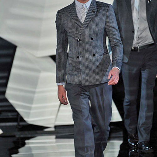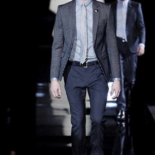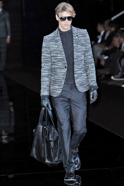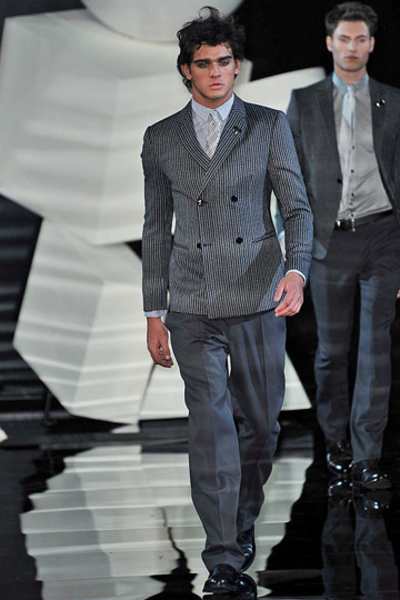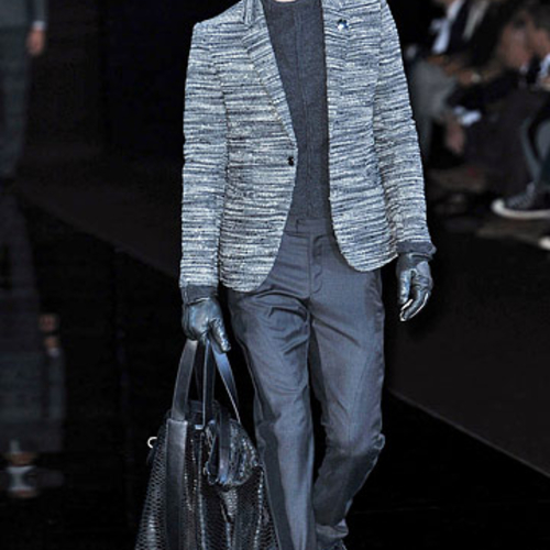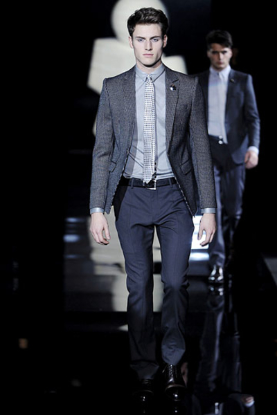 Основными цветами новой мужской коллекции осень – зима 2010/2011 модного дома Armani стали серый и темно-синий.