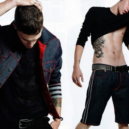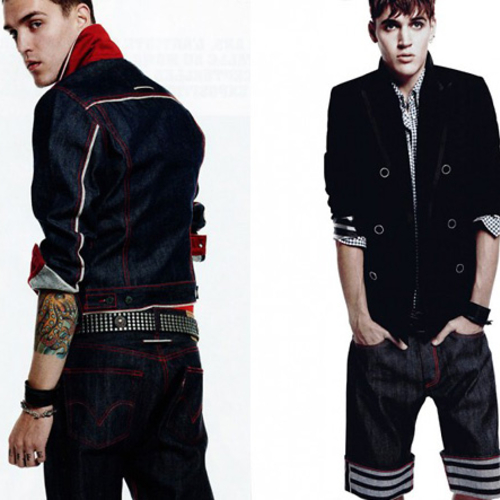 Готье никогда не покидает ощущение праздника и яркости. Вот и в новой джинсовой линии для Levi's это четко прослеживается в контрастных лентах и обстрочках на одежде ярко красного цвета. Даже манжеты штанин и лацканы курток Жан-Поль украсил в своем стиле черно-белыми горизонтальными полосками, а ремни утыкал кучей металлических заклепок.