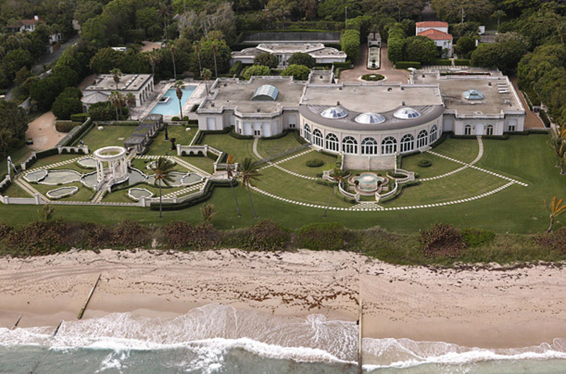 Хозяином этого дома в Палм-Бич является миллиардер Дональд Трамп. Территория усадьбы превышает 7 кв. километров. 15 спален, 8 ванных комнат, теннисный корт и роскошные коттеджи для гостей, огромный плавательный бассейн – вот неполный перечень того, что оценивают в 125 млн. долларов.