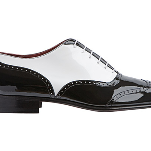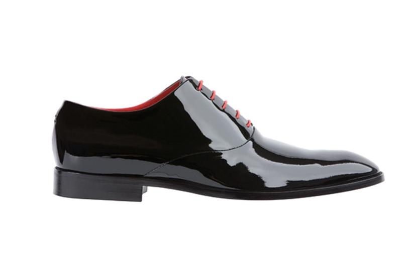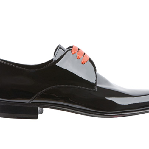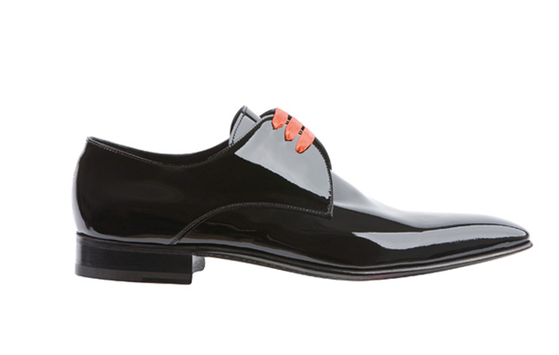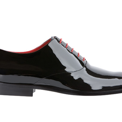 Необычайно стильно смотрятся черные лакированные кожаные туфли с ярко-красными или розовыми шнурками.