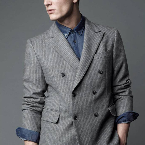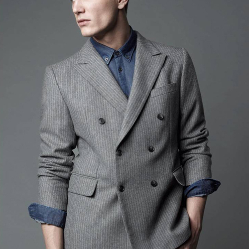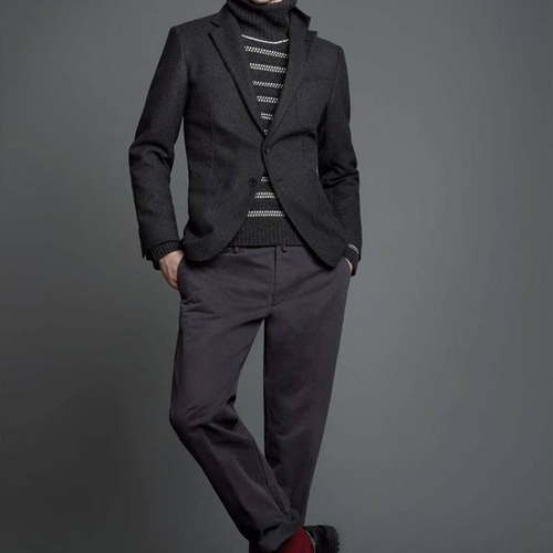 Немецкий модный бренд Joop! в своей осенне-зимней коллекции предлагает мужчинам попробовать скомбинировать джинсовую рубашку и классический серый пиджак в тонкую полоску, а также примерить сильно зауженные к низу брюки длиной до щиколотки.
