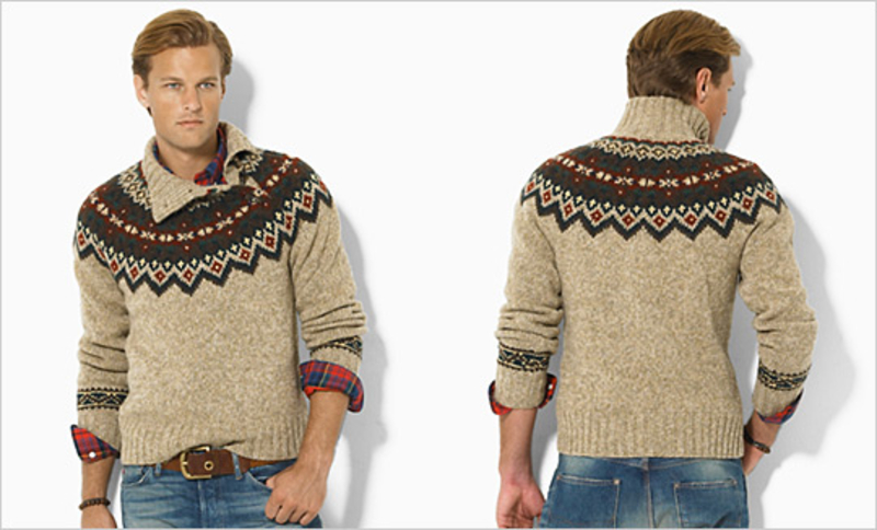 На зиму лучше покупать свитер с высоким воротом или горловиной из натуральной шерсти, как свитер от Ralph Lauren из шерсти альпаки (295 долларов США).