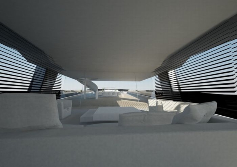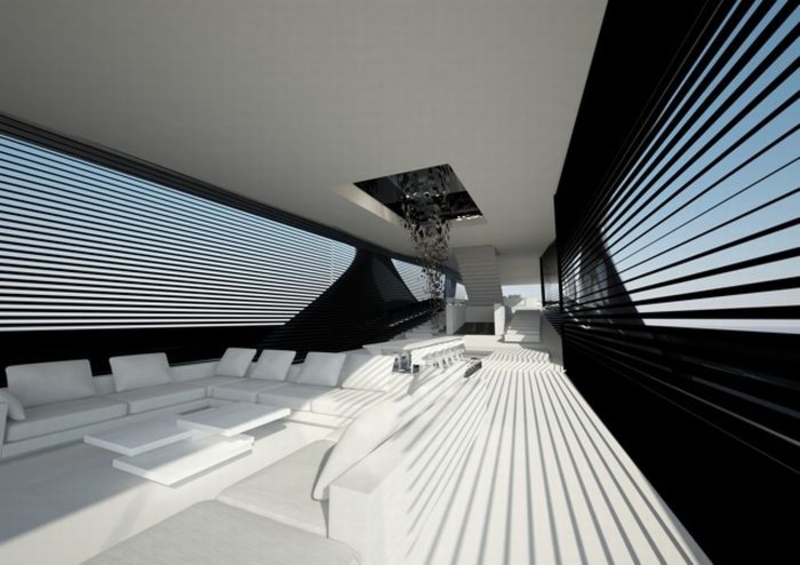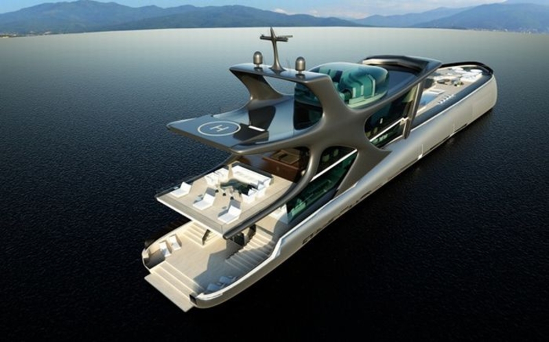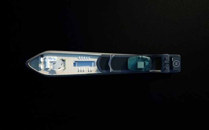 На носу яхты также нашлось место 14-метровому бассейну и барной стойке с двухуровневым холлом для отдыха. Ну, а на корме расположена вертолетная площадка – купив такую крошку за 200 миллионов евро, ты, конечно же, не забудешь купить и вертолет.