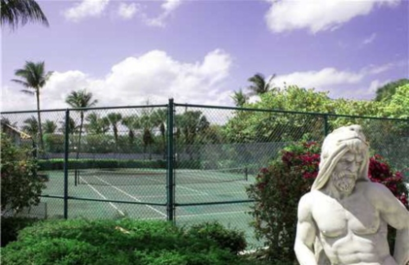 Площадь особняка составляет 834,5 квадратных метра. В нем есть пять спален, семь ванных комнат и комната для отдыха. На прилегающей территории расположены теннисный корт, бассейн, гараж на два автомобиля и пирс.