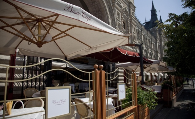 Бар Bosco занимает, пожалуй, самое удобное место среди девяти ресторанов, баров и кафе, размещенных в старинном здании ГУМа на Красной площади. Обстановка, выполненная в ретро-стиле 1970-х, располагает не только к потреблению традиционных московских блюд, но и к неспешному обозрению самой площади, собора Василия Блаженного и других исторических зданий.