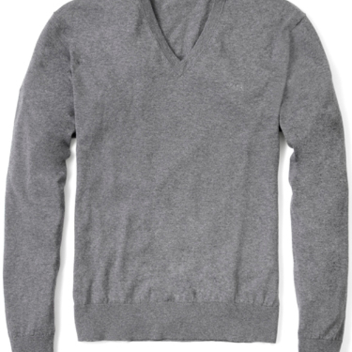 Серый вязаный джемпер из шерсти и хлопка – очень модный сегодня предмет одежды. Достаточно теплый, комфортный для тела, отлично сочетается с любыми джинсами.
