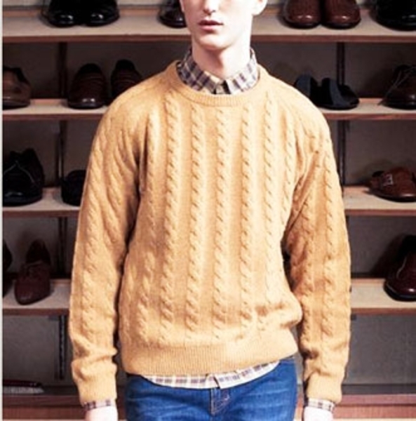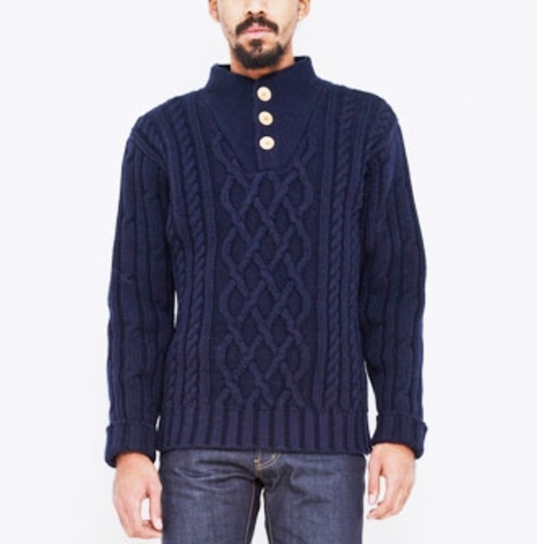 Молодая французская марка Bleu de Paname старается быть ближе к корням, поэтому вещи делаются во Франции из родного сырья. Модель называется Navy Cable Officer Sweater, и, как нетрудно догадаться, дизайнеров тоже вдохновила милитаристская тема. Шерсть для свитера, по идее, должна быть сострижена с французских овец.