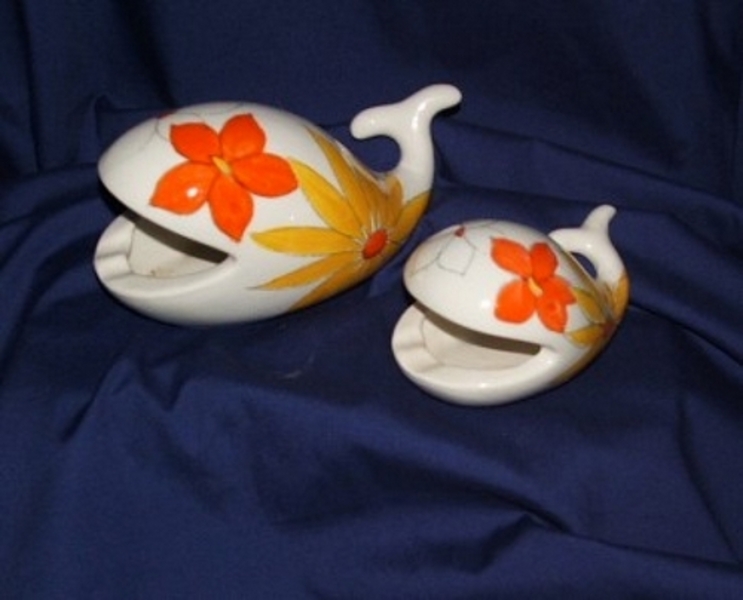 Горящая сигарета вставляется в пасть «животного». Туда же отправляется и пепел. С виду немного старомодные, но хорошо дополняют столовый сервиз 50-летней давности.