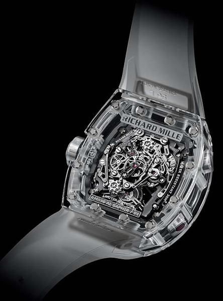 Часы сразу привлекают внимание любителя и знатока своим прозрачным корпусом: он сделан из сапфира с антибликовым покрытием. Кстати, на создание одного корпуса уходит 1000 часов. Калибр RMCC1 заводится вручную и усложнен турбийоном.