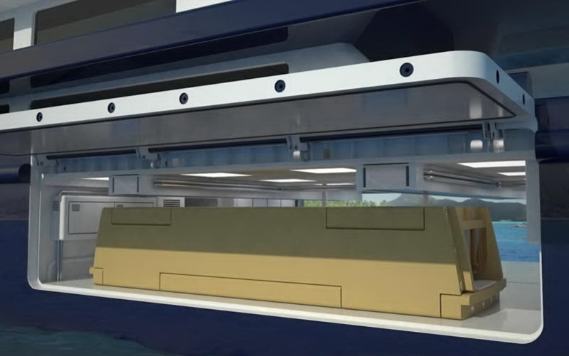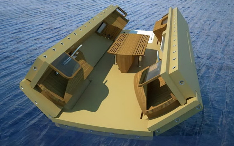 Новинка получила название Recreational Island. Это по сути раскладная плавучая платформа, которая легко складывается и может храниться в таком виде в трюме даже небольшого судна.