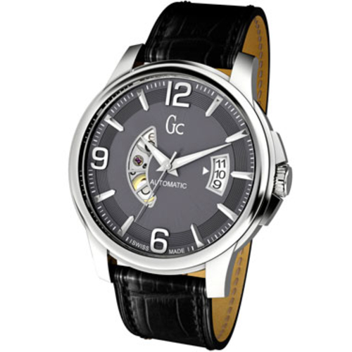 Необычный дизайн рельефного циферблата. Индикация домашнего времени при помощи часовой и минутной центральных скелетонизированных стрелок. Серый титановый корпус и такой же серый ремешок кожи аллигатора с титановой застежкой.