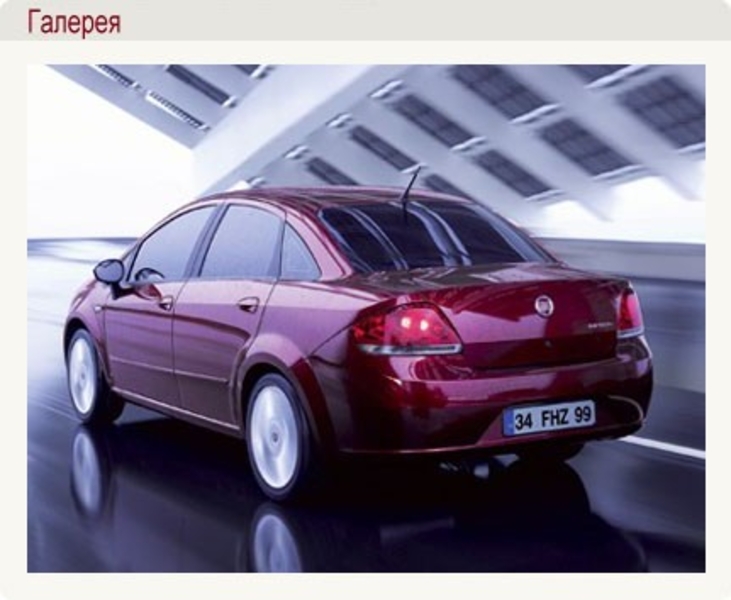Начнем с дорогого. Переднеприводной седан Fiat Linea комплектуется бензиновыми двигателями объемом 1,4 л мощностью 77 и 120 л.с. и пятиступенчатой механической коробкой передач. Объем багажника составляет 500 л, а при сложенных задних сидениях – 870 л. Двигатели автомобиля отвечают экологическим нормам токсичности выхлопов EURO 4. Комплектация автомобиля весьма богата: антиблокировочная система ABS + EBD, гидроусилитель руля, кондиционер с ручной регулировкой и с фильтром цветочной пыльцы, передние противотуманные фары, иммобилайзер, путевой компьютер, подушка безопасности водителя и переднего пассажира, магнитола с проигрывателем. Гарантия на автомобиль – 2 года без ограничения пробега, от сквозной коррозии кузова – 8 лет (кузов 2-х сторонней оцинковки), на лакокрасочное покрытие кузова – 3 года.