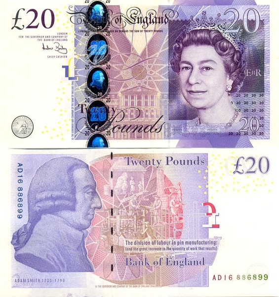 - 20 фунтов - создатель традиционной экономики Адам Смит.