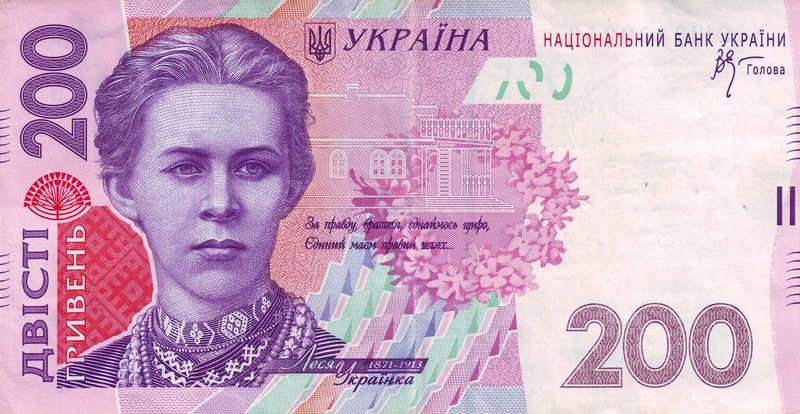Но потом эту мужскую компанию разбавила поэтесса Леся Украинка. Она была единственной женщиной, изображенной на украинских деньгах, но самой весомой - номиналом в 200 грн. Так продолжалось пять лет, пока не появилась банкнота номиналом в 500 грн. с портретом Григория Сковороды.