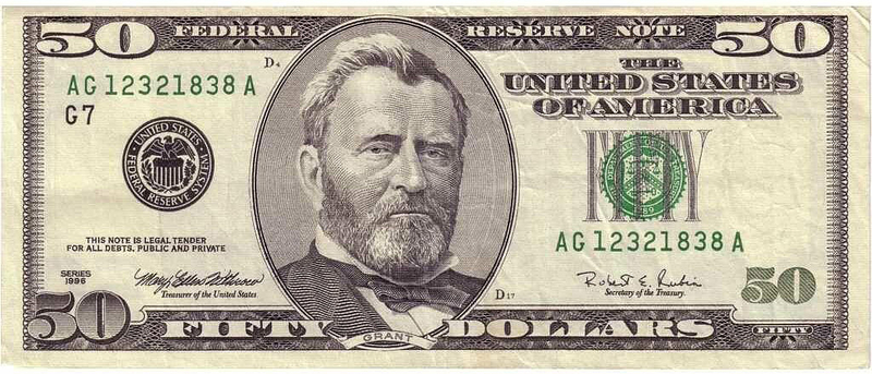 - $50 - 18-й президент США и герой гражданской войны Улисс Грант