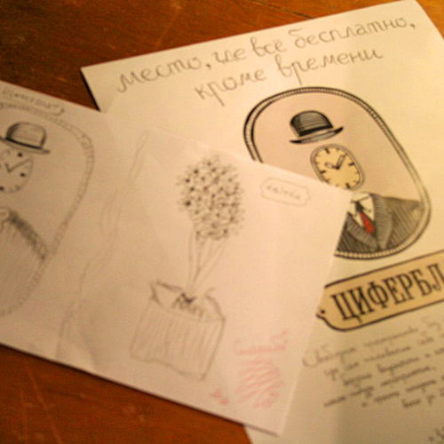 В "Циферблате" нет официантов, меню, изобилия блюд, чаевых. Здесь посетители платят исключительно за время, и в подтверждение этого получают символический атрибут - будильник с именем. Он не работает, но напоминает тебе о том, что ты находишься в открытом пространстве, где минуты имеют фиксированную цену.