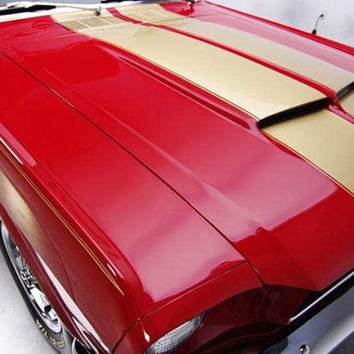 Также дизайнер сохранил оригинальные бамперы, фары и окна. На крышке капота появился широкий воздухозаборник, а окрасили автомобиль в ярко-красный цвет с элегантными желтыми полосами по центру.