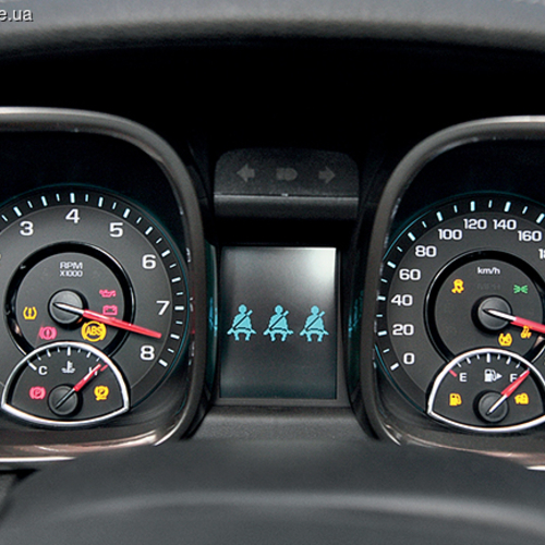 Впрочем, обновленные версии с измененной передней частью и торпедо еще не появились в продаже на украинском и европейском рынках. Хотя, может, американцы слишком балованные, ведь и тестовая, дорестайлинговая машина смотрится свежо. Несомненная заслуга в этом ноток от купе Camaro. Стоит взглянуть на корму, чтобы увидеть знакомую камаровскую заднюю оптику.