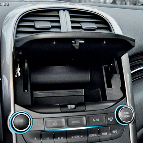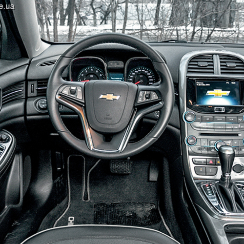 На тест мы выбрали наиболее богатую версию Malibu в комплектации LTZ. Первое и главное отличие этого оснащения – кожаный салон. Из менее заметных – бесключевой доступ и запуск мотора кнопкой, двухзонный климат-контроль, передние кресла с памятью и трехступенчатым обогревом. Внешне самую дорогую модель можно узнать по люку в крыше, биксеноновым фарам и колесным дискам R18.