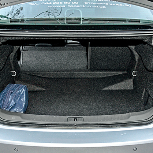 Зато багажник большой – 545 литров. При необходимости спинки можно сложить, получив практически ровный пол. Кроме того, на заднем диване есть специальные проушины для ремней безопасности, что не дает им соскальзывать в проем при сложенных задних креслах.